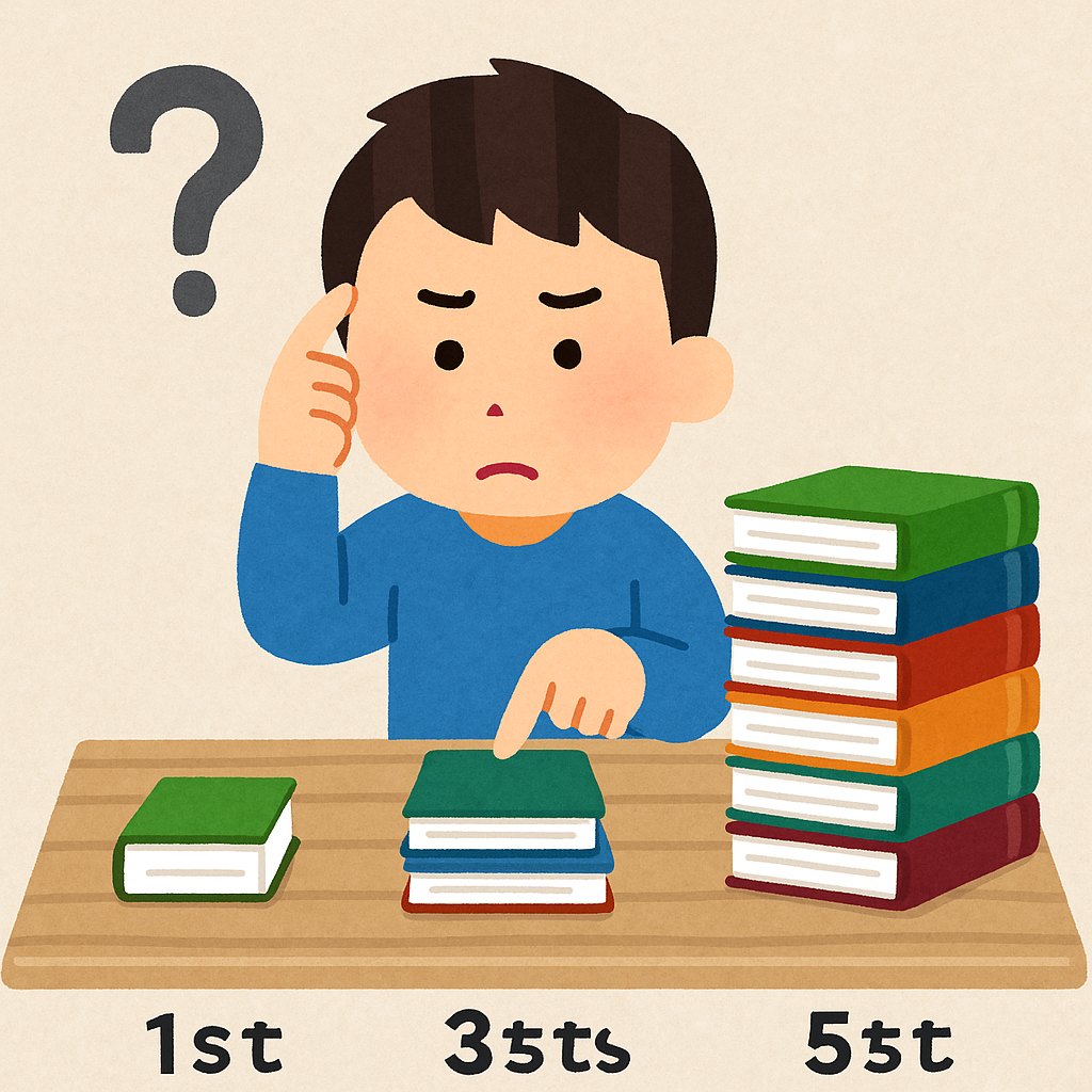 多くの人が陥る失敗が「テキストを買いすぎること」です。最初はやる気があっても、気づけば本棚に未使用の教材が積まれている…。これは典型的な失敗例です。